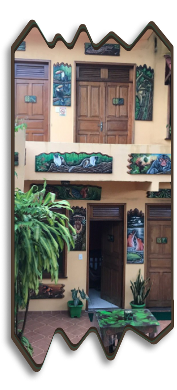 As madeiras aonde estão os entalhos e as molduras dos quadros são matérias coletados de modo reciclável da floresta amazônica, todas essas peças que hoje decoram o Hostel Manaus, eram peças que estavam no chão ou muitas vezes mortas dentro da floresta e então o Antônio Gomes com sua criatividade resolveu dar vida novamente para essas madeiras Através de entalhos e molduras da vida amazônica... Com suas ideias e vivências como guia de turismo ou mesmo morando dentro da Amazônia, se juntou com um artista regional que passou a transcrever as ideias e vivências do Antônio para os quadros e entalhos, de 2015 ate os dias de hoje foram feitas